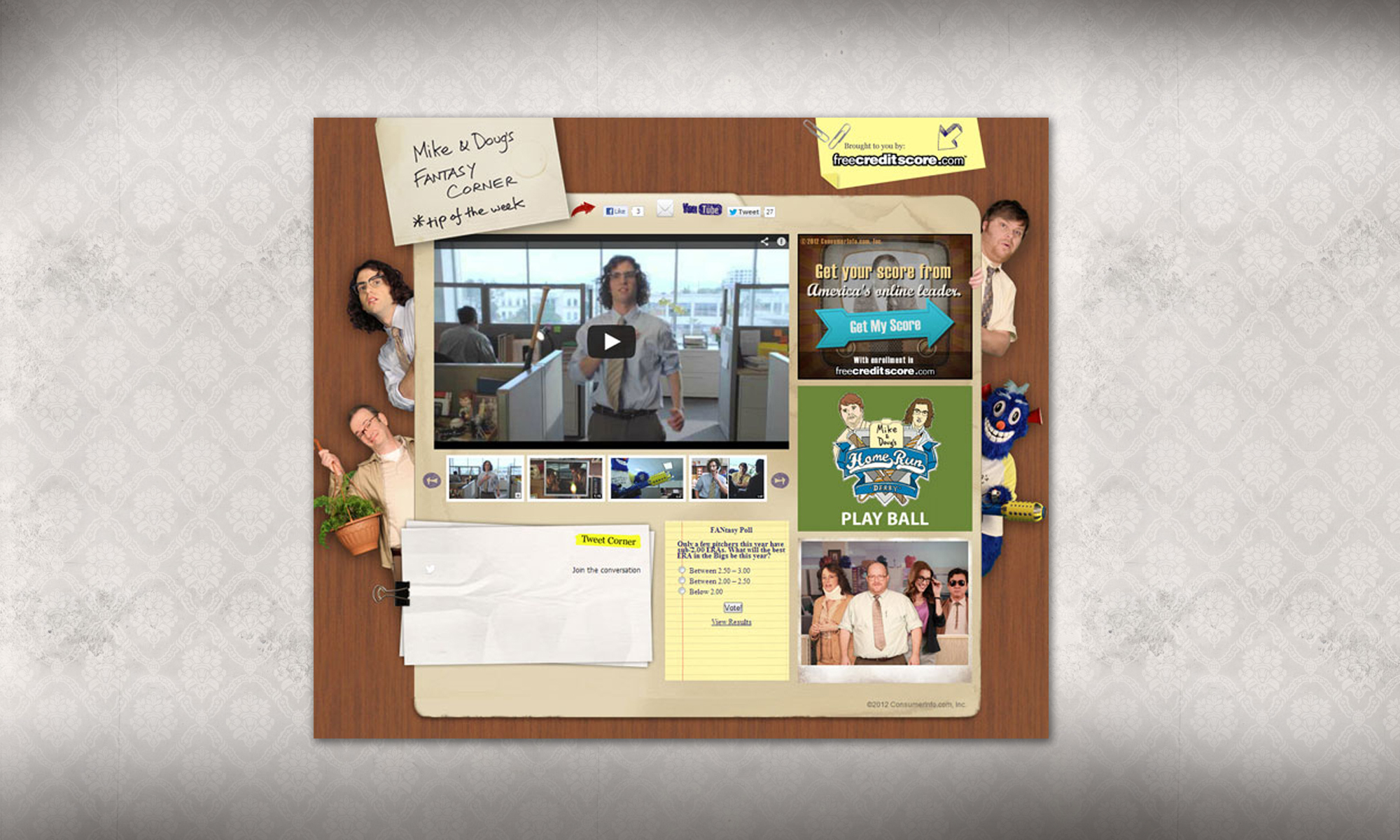 Mike & Doug’s Fantasy Corner was a branded content campaign created by freecreditscore.com to support their sponsorship of Yahoo Fantasy Sports. The campaign launch coincided with baseball season and featured two fantasy baseball fanatics, Mike and Doug, who film a fantasy baseball bog from their office cubicle. Each week Mike and Doug offer a tip on how to enjoy fantasy sports at work and not get caught. The campaign was a huge success and earned 11 awards for creative excellence.